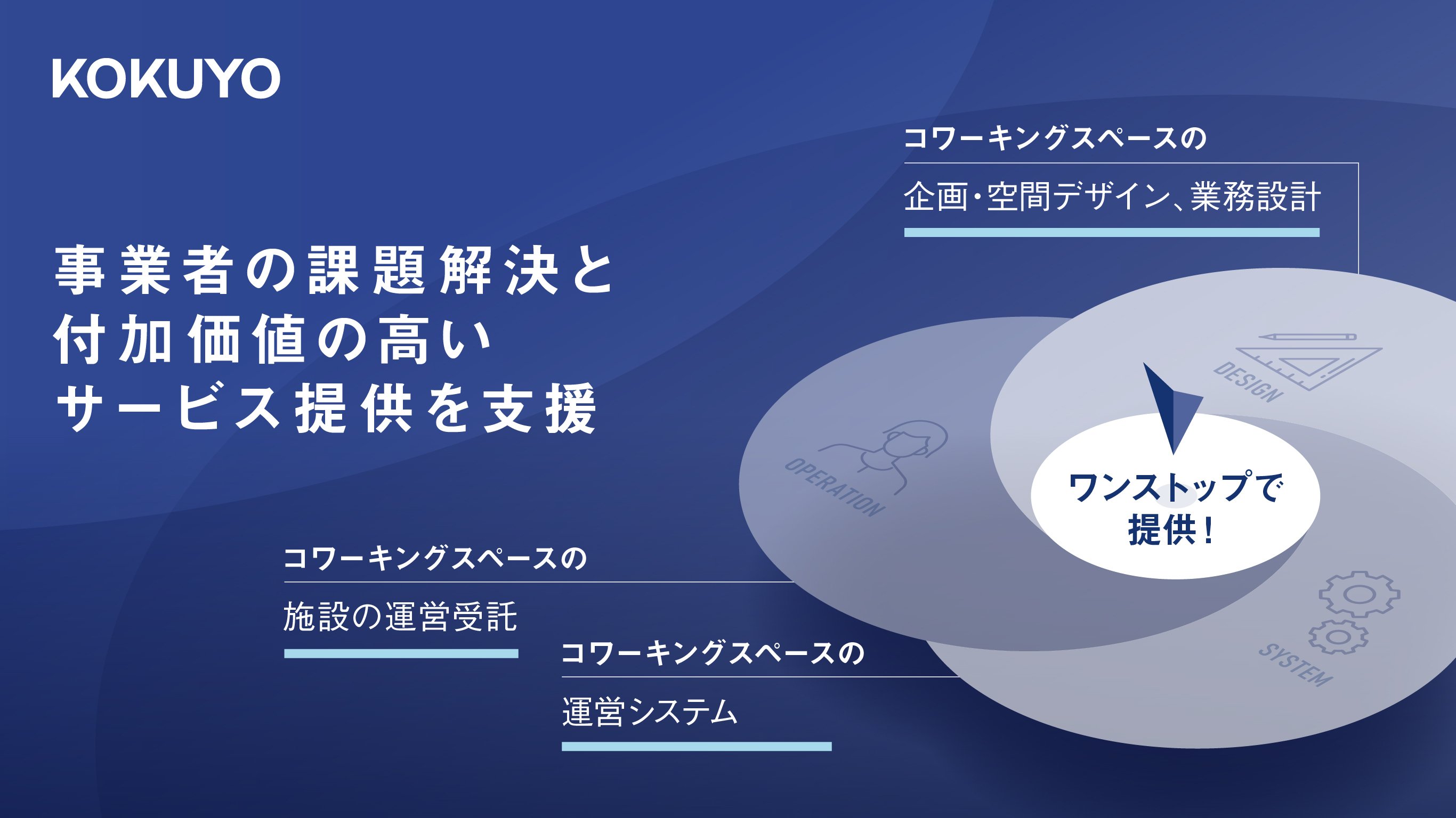 近年、フレキシブルオフィス*1 市場は成長が見込まれており、地方自治体における創業支援や遊休不動産の利活用など、シェアリングスペースを開設する動きが続いています 。このような顧客ニーズを捉え、コクヨは完全子会社であるコクヨアンドパートナーズ株式会社(以下、K&P)を通じて、コワーキング、シェアオフィスの運営受託事業(BPO)の拡大に取り組んできました 。BPO提供に加えて、施設の運営管理を自動化するクラウドサービス「スペースマネジメントシステム」を事業の基盤とし、K&Pの運営受託事業とのシナジーを最大化させ、事業の拡大を加速させるものです。